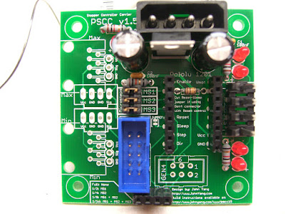 The pololu stepper controller carrier comes as a kit. Follow the directions below to put it together to be a drop in replacement for a makerbot/reprap stepper controller. You can buy a Carrier Board kit from MakerGear here. If you have questions, please email me at lj.johnyang*AT*gmail*DOT*com